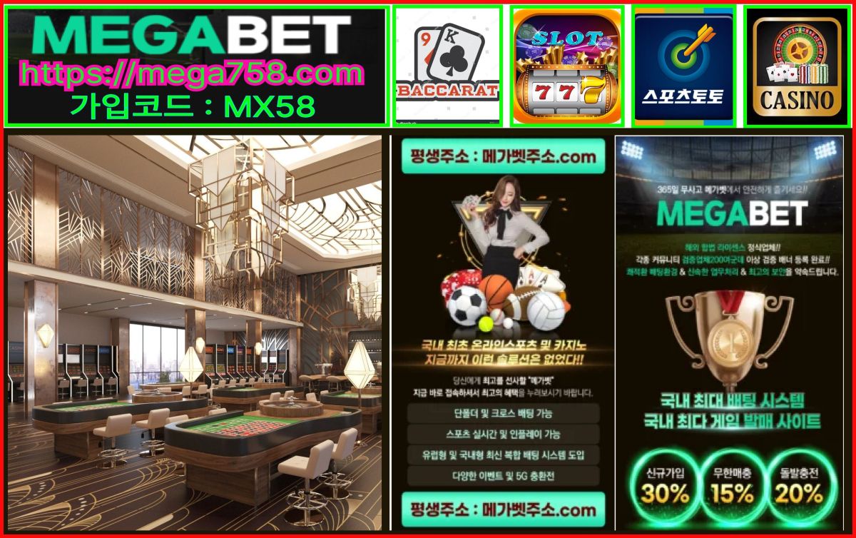 자본력이 높은 최고의 메이저놀이터 메가벳토토사이트 는 최신식 유럽형 솔루션으로 빠르고 쾌적한 배팅환경을 선사합니다.